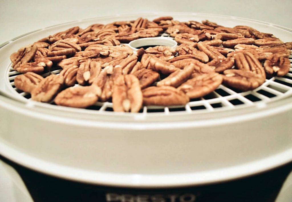 - Pasa a deshidratar con el método que más prefieras. En el deshidratador puedes usar 35C por 12 hrs hasta 2 días. Checa las instrucciones del tuyo. Si solo tienes horno, pon tus nueces y semillas en charolas diferentes y usa en lo más bajo, por hora y media , vigila mucho los últimos 15 minutos porque se pueden quemar. Las primeras en salir son las más pequeñas y las últimas son las almendras. Elige que nivel cruchy prefieres. Separa las semillas chicas de las grandes, porque no están al mismo tiempo. Lo que quieres con el horno es deshidratar, si subes la temperatura se tostarán y pueden llegar a oxidarse y no quieres eso.